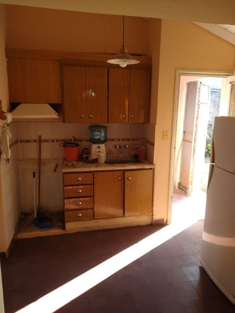 2 dormitorios, living, cocina, baño, patio amplio y espacio para vehículo.